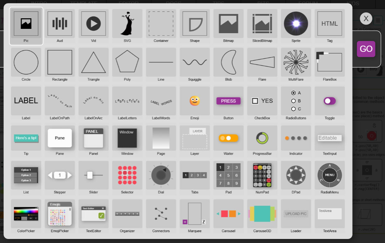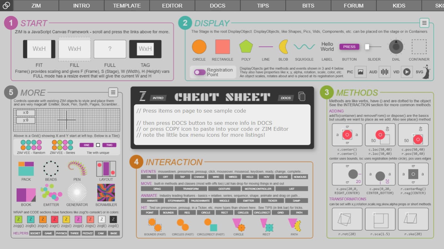 super colorfull coding, the best way to understand what is https://zimjs.com/docs and https://zimjs.com/spells.html is about ! only i miss