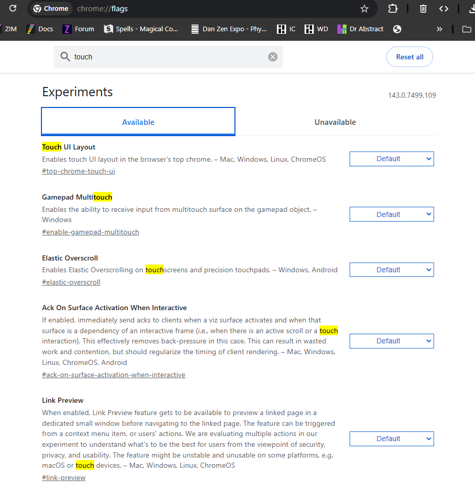 I don't have that in my Chrome Flags settings. I have not been in there to do any changes and touch works on my touch screen. But obviously touch is not working on all boards - so will get to the bottom of it.