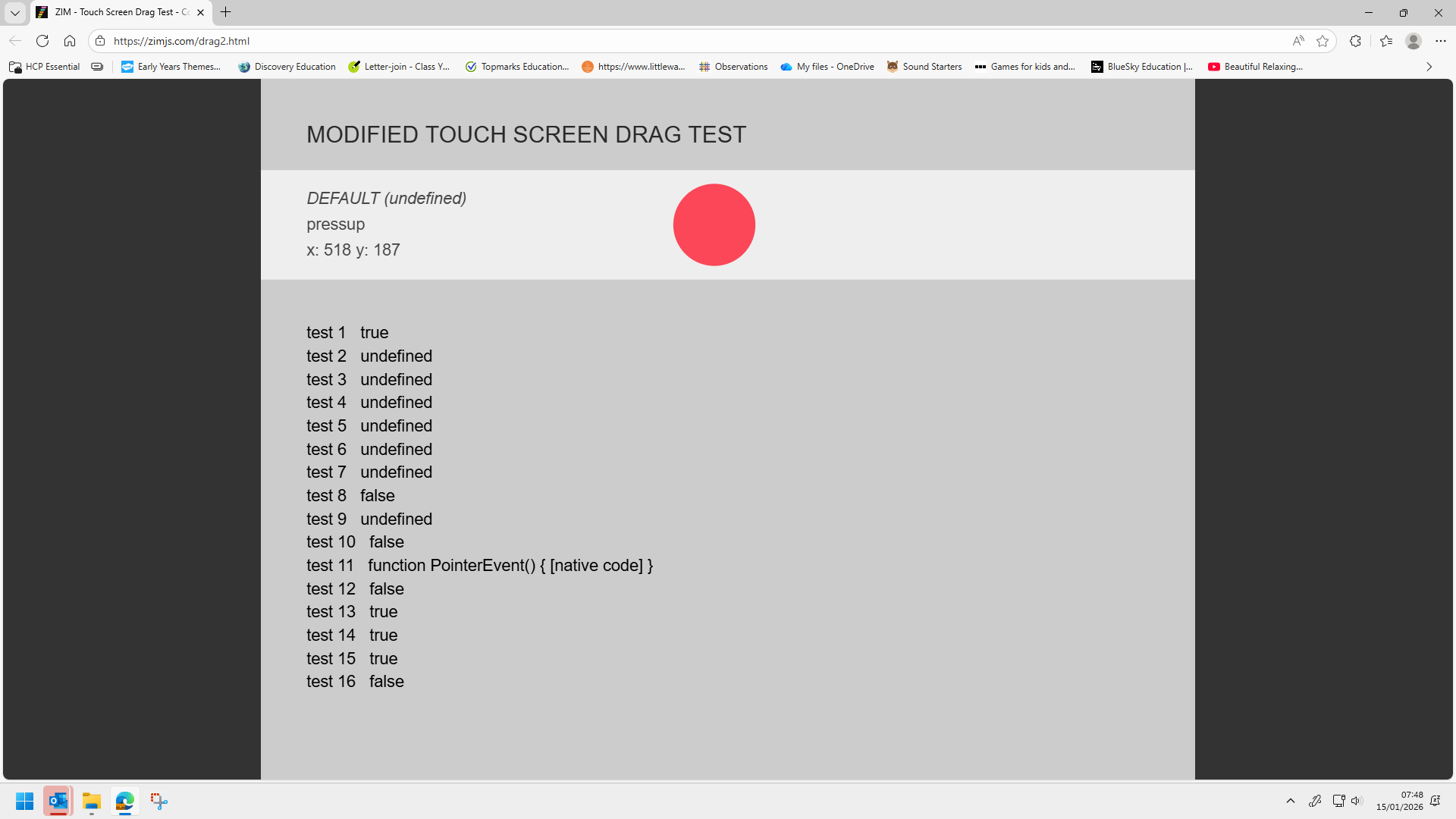 The test still shows the various test values (like the touch page). So this is the preferred test page for the teachers to report on. If we could have them screenshot the values or provide a short vid like last time, and see if the circle drags on their boards.