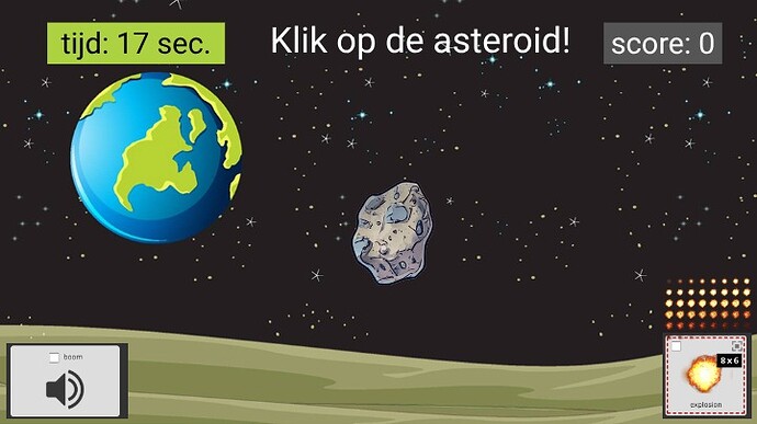 ZAPP: ZIM/kids/explosion level3: Sprite(ai_asteroids.png)+Emitter() (GAME NL) | ZIM JavaScript Canvas Framework