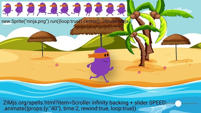 ZAPP: man/noskate new Sprite(.png) pijltjes <> backing left<>right (scroller)OK | ZIM JavaScript Canvas Framework