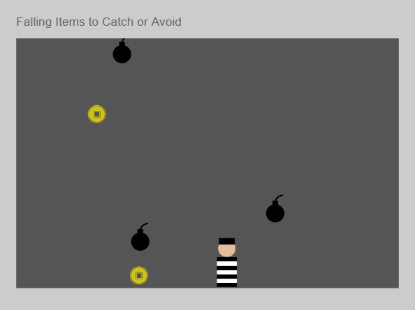 I made a game with pirates and falling bombs (explosion is only a picture of a star here), based on basic example of bits https://zimjs.com/bits/view/falling.html