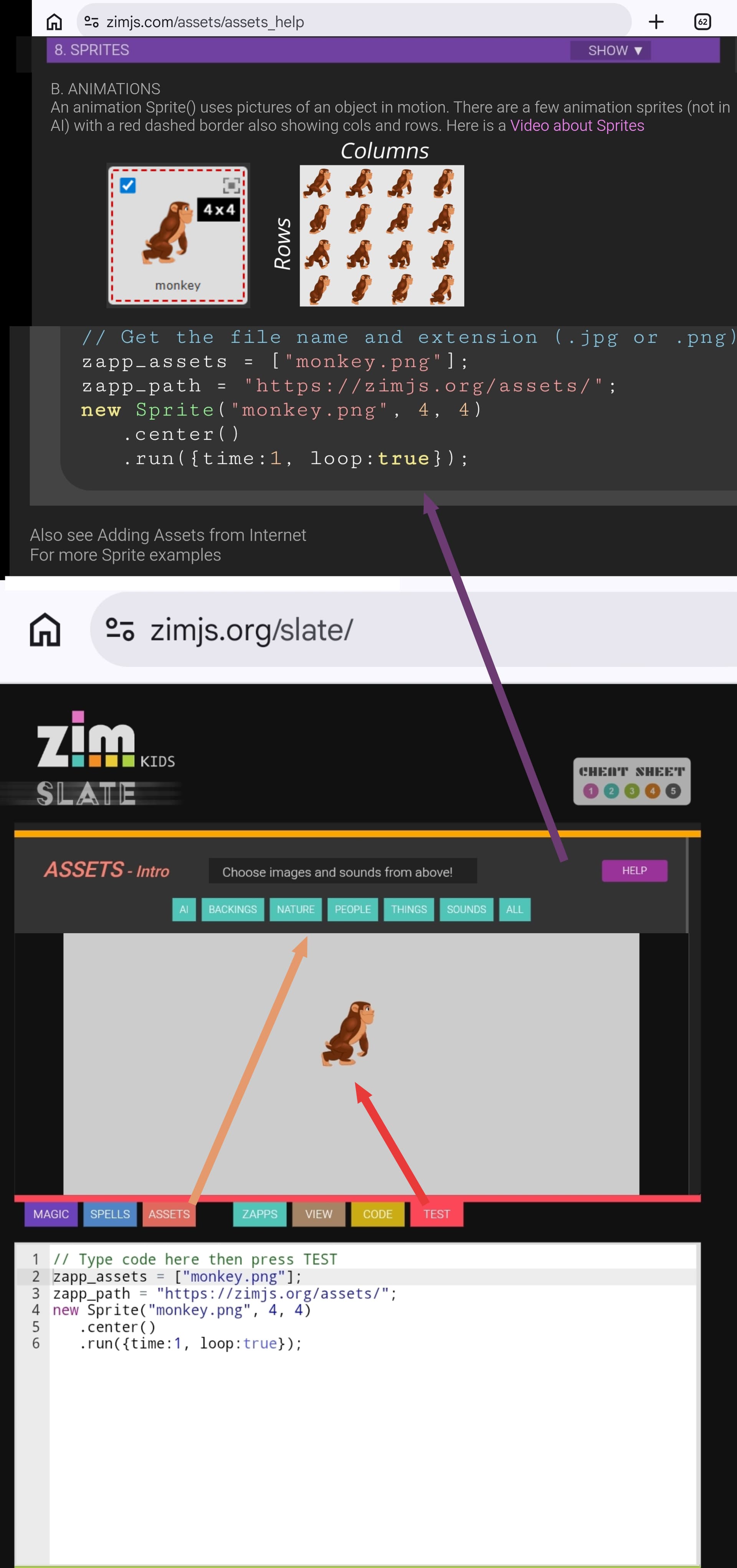 How to code a new Sprite(monkey, 4,4(.run(time,loop) ?