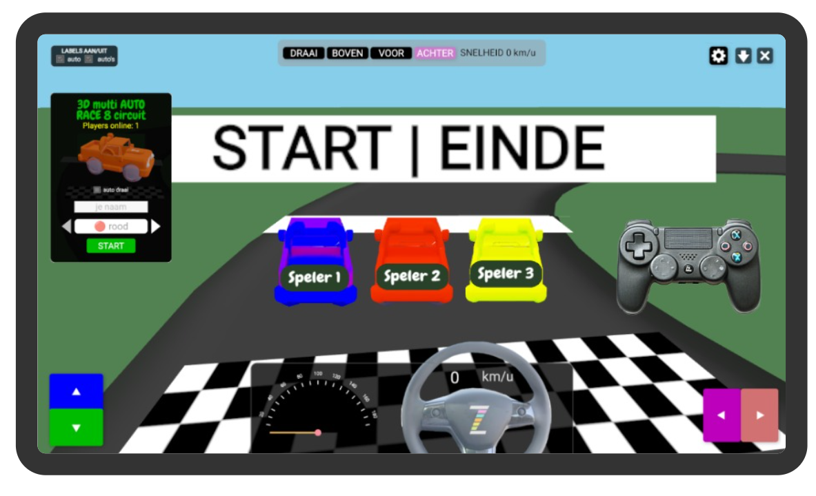 same idea but now for driving a car in 3D, colors yellow, red, blue and colored
