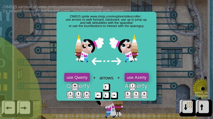 ZAPP: man/noskate new Sprite(.png) pijltjes <> backing left<>right (scroller)OK | ZIM JavaScript Canvas Framework