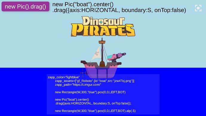 I started to make DinoPirates , do you like? you can switch boats, to show kids how you can use ZIM for real games
