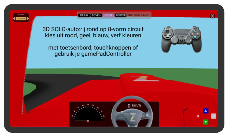 same idea but now for driving a car in 3D, colors yellow, red, blue and colored