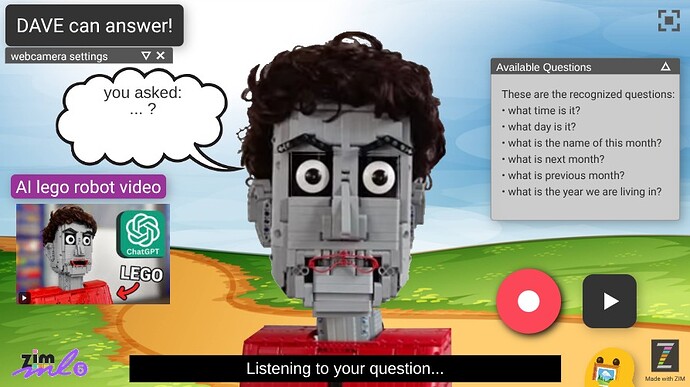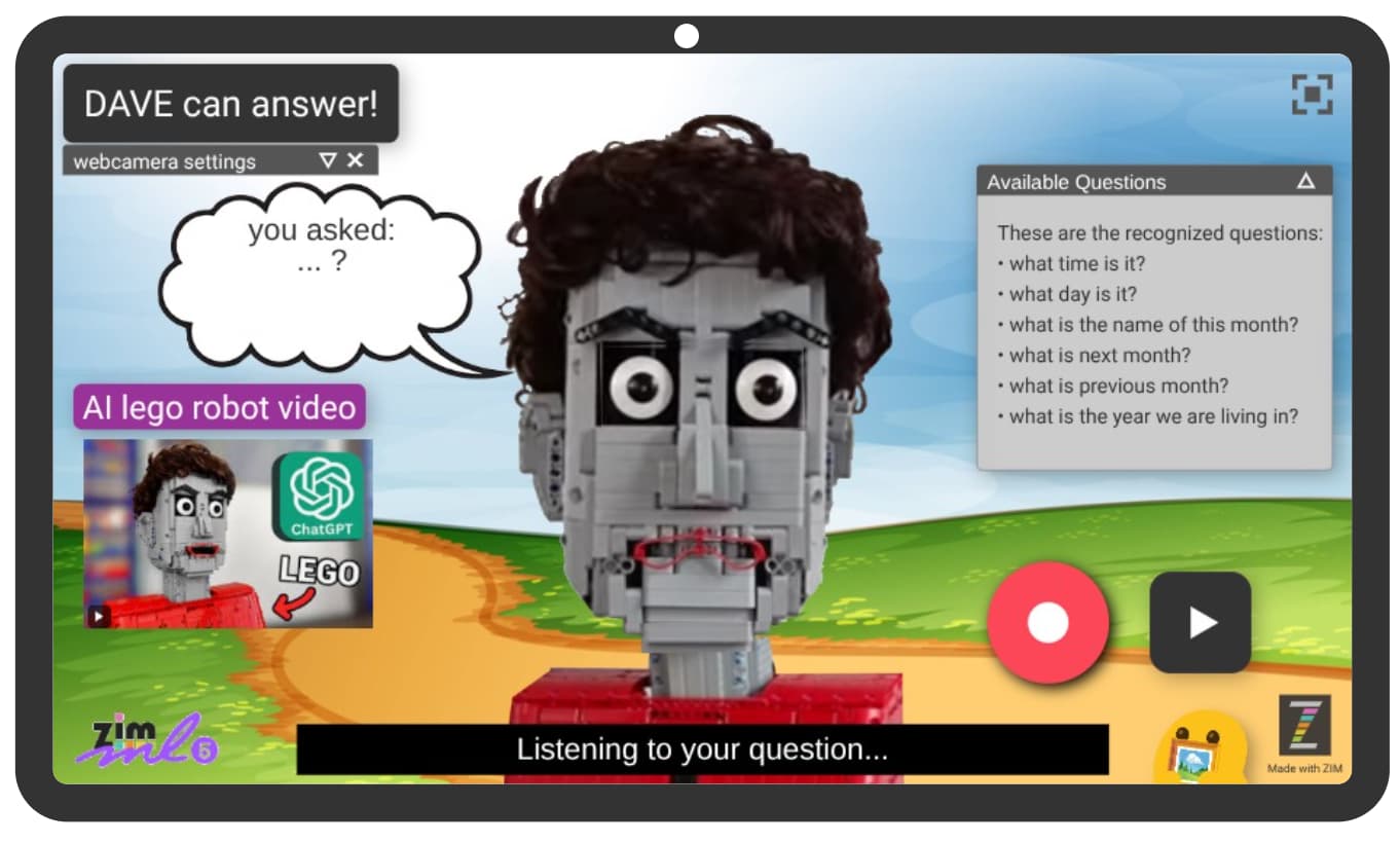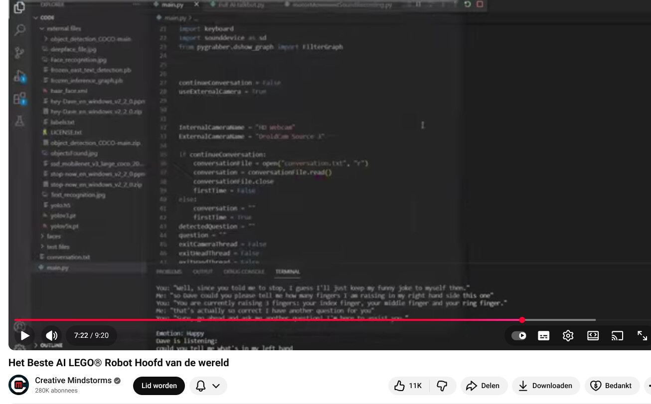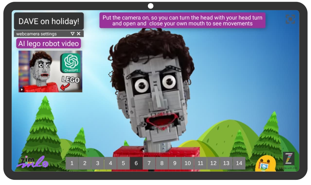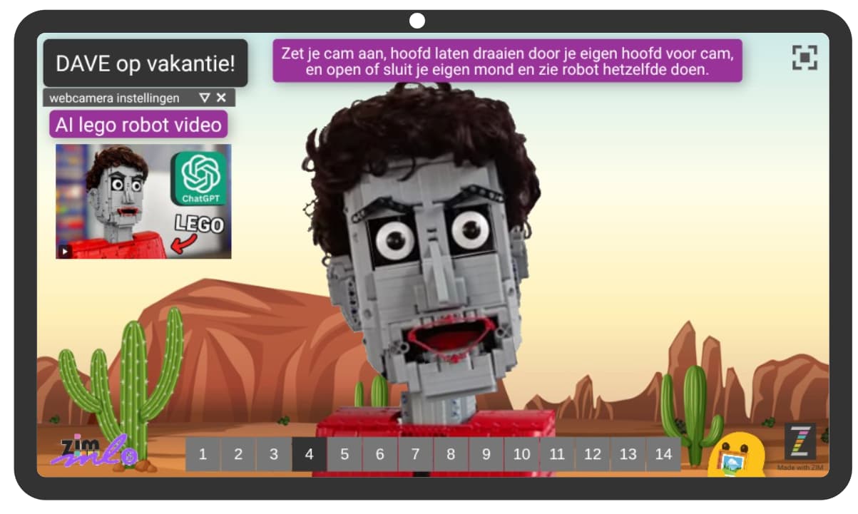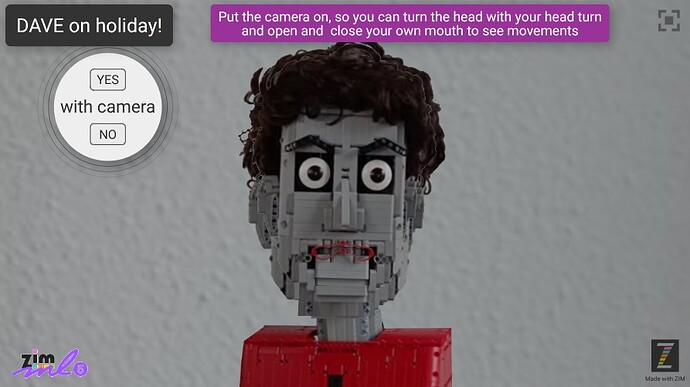DAVE hoofd: webcam kijk hoe wijd je mond open is, en kijkt naar de hoek van je hoofd om het hoofd van Dave te draaien.