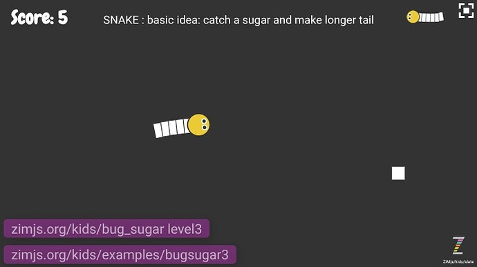 head and segments cross above each other, score is eaten sugar with pictures ontop