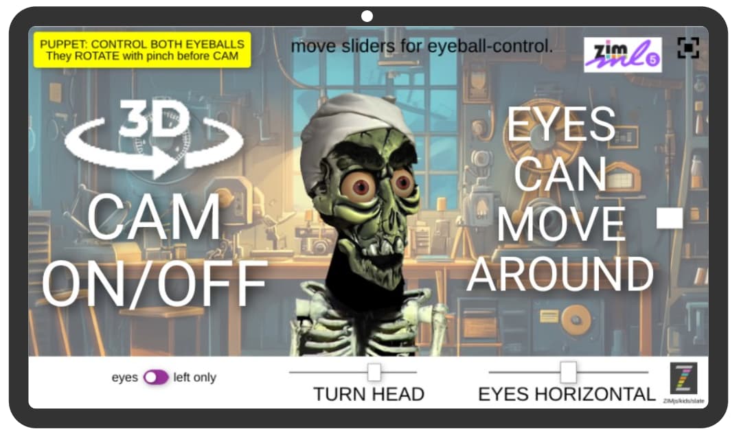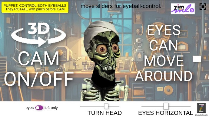 turn around the puppet head, eyeballs and do it with sliders or use pinch before your webcam, see the magic