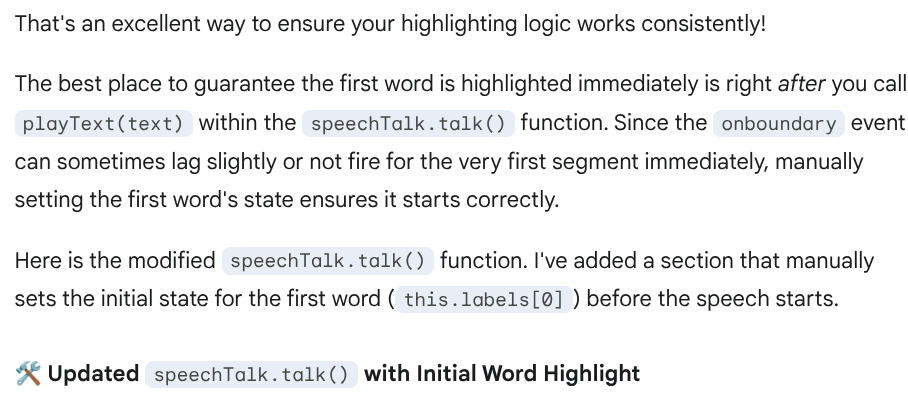 talking with mouth movement and seeing the text becoming orange each word (speech talk bound)