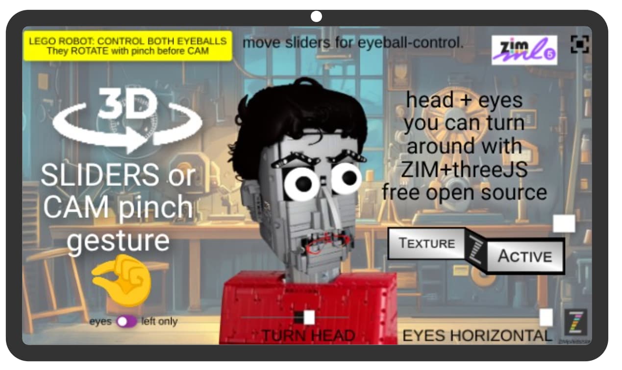 made the original ThreeJS robot yellow jump, thumup, wave.. as basic code from