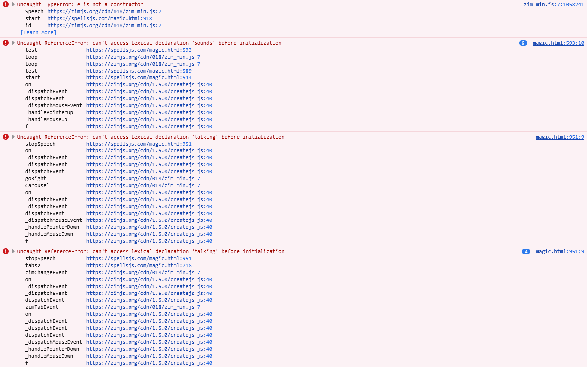 Is anyone having problems seeing https://spellsjs.com ? @karelrosseel82 is - we sent a note of the errors to our server fellow - he does not know why but we are keeping an eye on it. If you see this, let us know. Cheers.