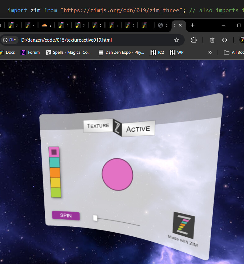 Note... if you are not using ZIM Three then you are writing a lot of extra code. But if you want to go raw three.js then make sure to check https://zimjs.com/015/textureactive_raw.html