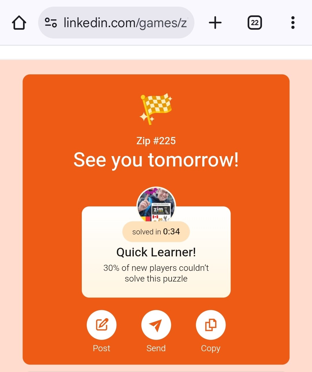 Just played ZIP in Linked In - we could have made that in ZIM.